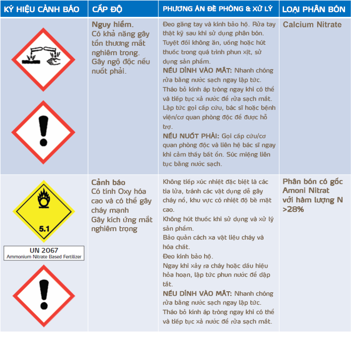 Nhãn trên bao bì chứa nhiều thông tin pháp lý quan trọng trong các khâu vận chuyển, bảo quản và xử lý phân bón. Thành phần hóa học của sản phẩm được ghi trên bao bì phù hợp với quy định của từng quốc gia và thị trường phân phối.